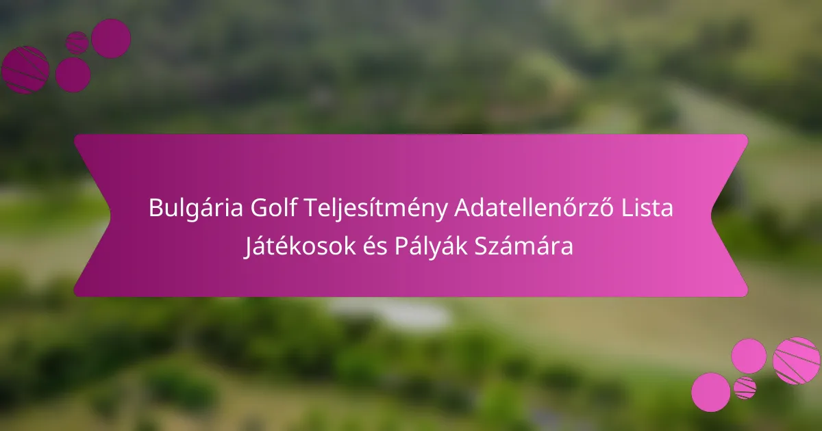 A Bulgária Golf Teljesítményadat Ellenőrzőlista egy strukturált eszköz, amelyet a golf teljesítményének értékelésére és javítására terveztek a játékosok és a pályák számára Bulgáriában. Különböző mutatókat tartalmaz, amelyek segítik a játékosokat a fejlődésük nyomon követésében, és a pályák értékelni tudják ajánlataikat.