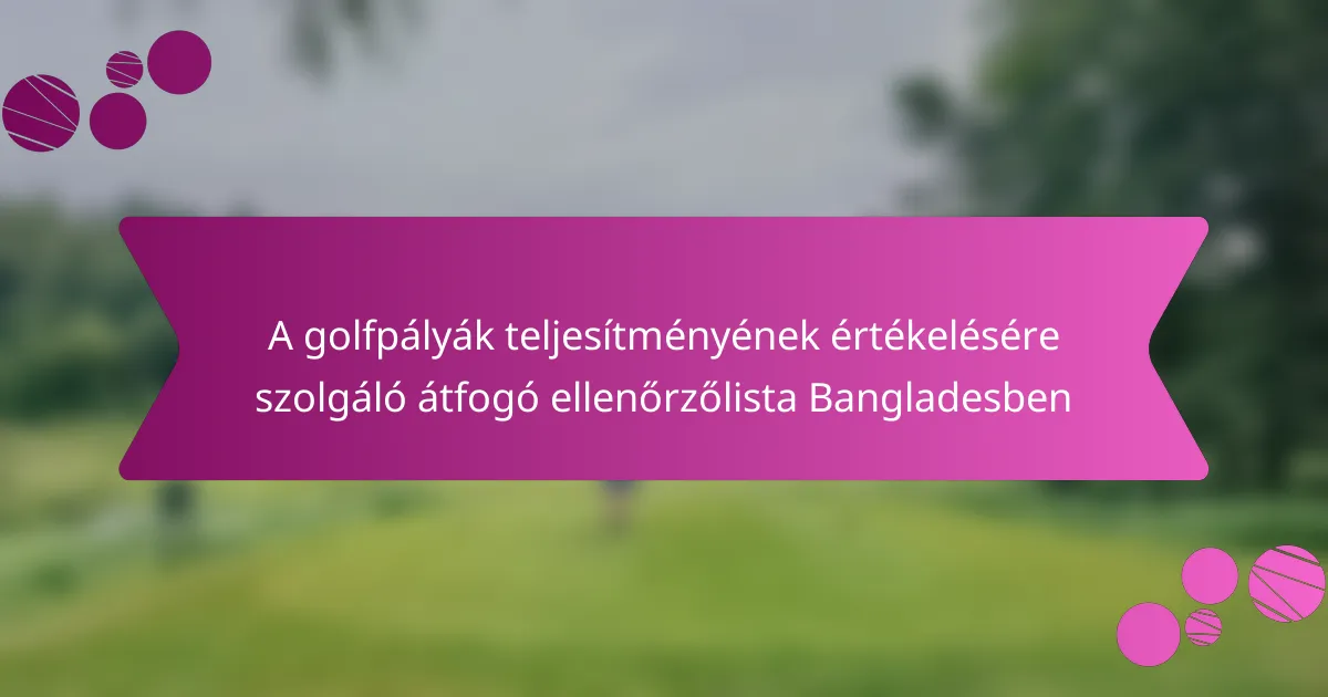 A bangladeshi golfpályák teljesítményének értékeléséhez átfogó ellenőrzőlista szükséges, amely magában foglalja a pénzügyi egészséggel, az ügyfél elégedettséggel és a pálya minőségével kapcsolatos kulcsfontosságú teljesítménymutatókat (KPI). Az olyan mutatókra összpontosítva, mint a jövedelmezőség, a költségkezelés és a működési hatékonyság, a pályavezetők megalapozott döntéseket hozhatnak, amelyek javítják a játékosok élményét és a teljes jövedelmezőséget.